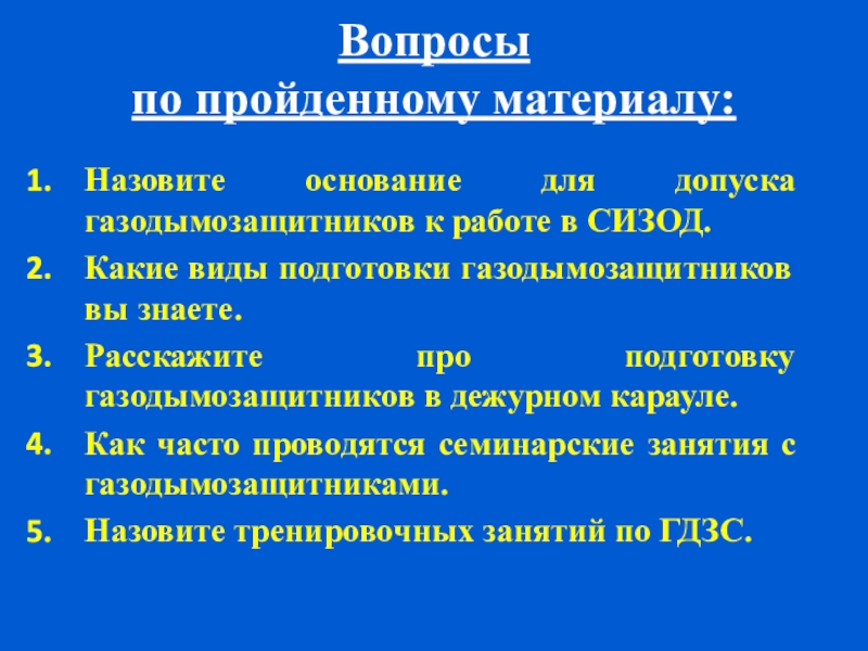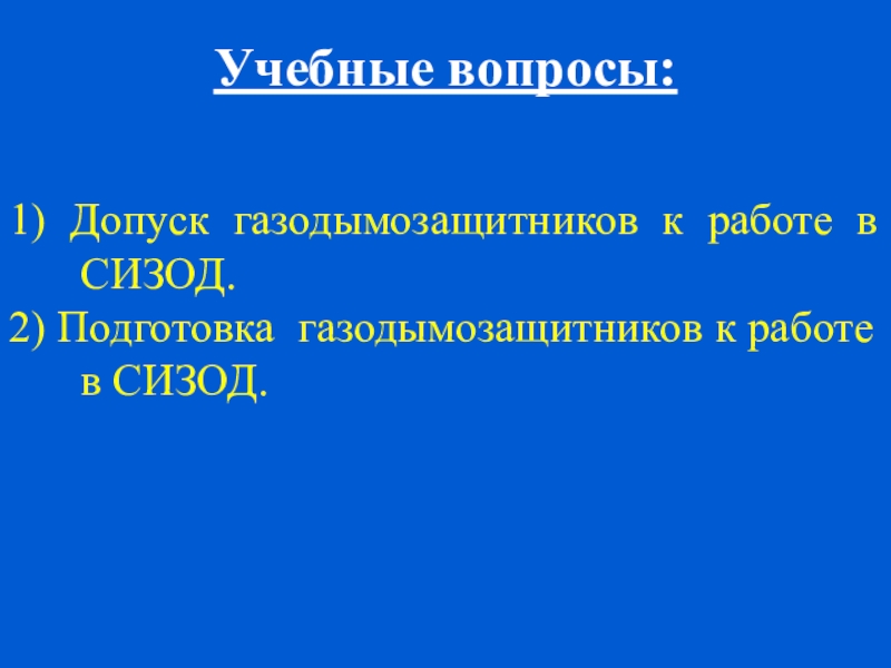 Тема: «Подготовка и допуск газодымозащитников к использованию СИЗОД»
