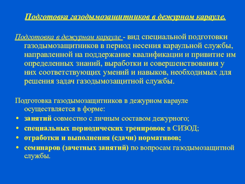 Подготовка газодымозащитников в дежурном карауле осуществляется в форме: