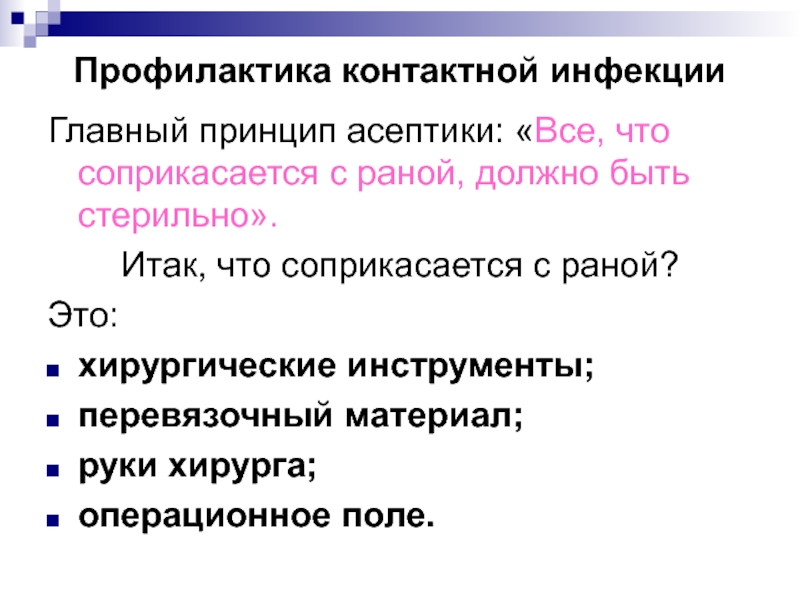 Главный принцип асептики: «Все, что соприкасается с раной,