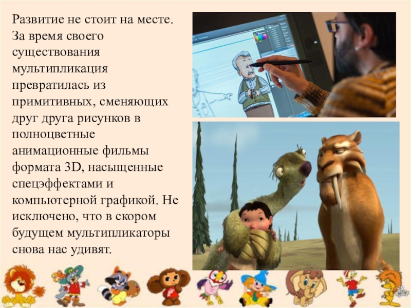Слайд 23Развитие не стоит на месте. За время своего существования мультипликация