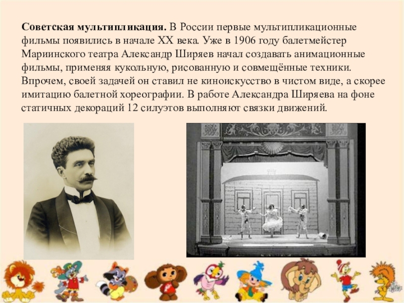 Слайд 11Советская мультипликация. В России первые мультипликационные фильмы появились в начале