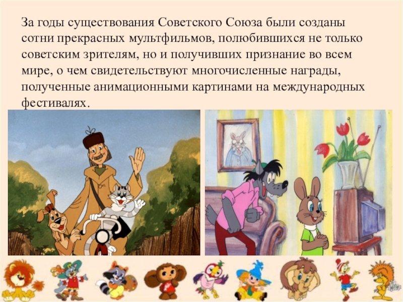 Слайд 15За годы существования Советского Союза были созданы сотни прекрасных мультфильмов,