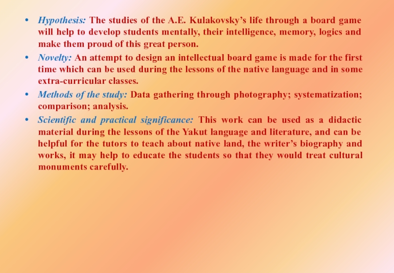 Слайд 3Hypothesis: The studies of the A.E. Kulakovsky’s life through a