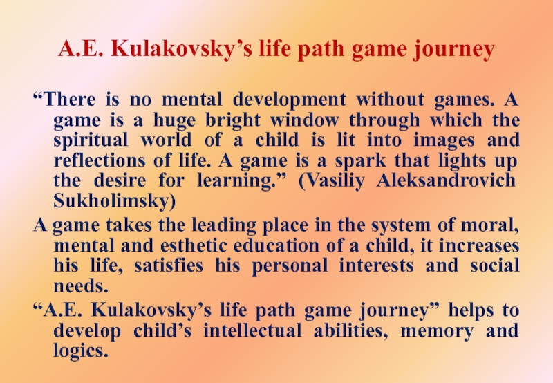 Слайд 4A.E. Kulakovsky’s life path game journey