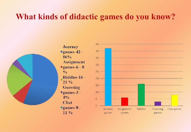 42 people approved that they know journey games, 16 people – riddles, 6 people – assignment games, 8 people know of chat games, and 3 people – of quessing games.
