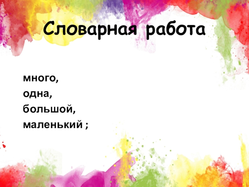 Словарная работа много, одна, большой, маленький ;