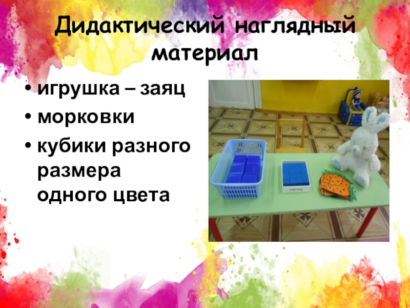 Дидактический наглядный материалигрушка – заяцморковкикубики разного размера одного цвета