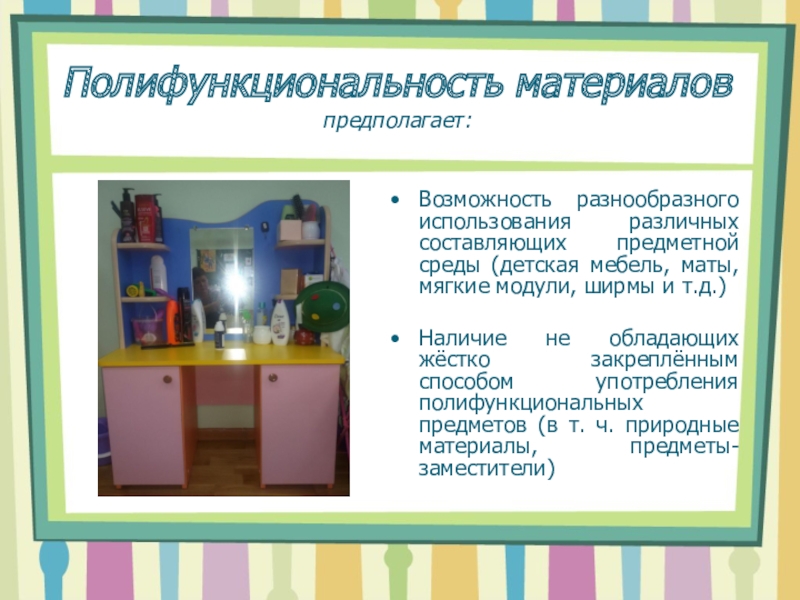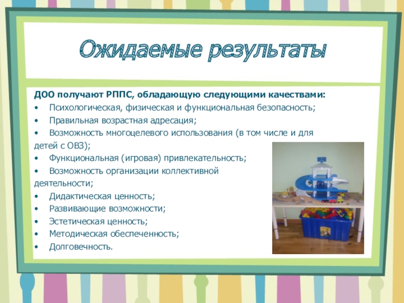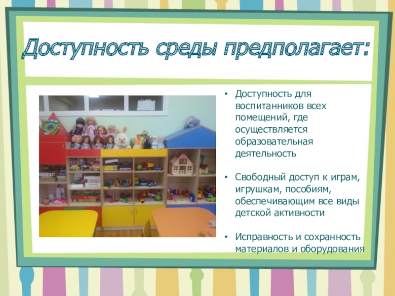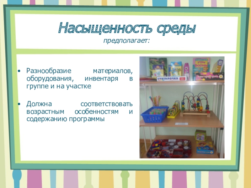 оснащенность групп мебелью, игровым и дидактическим материалом в соответствии с ФГОС;