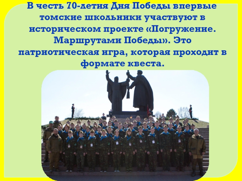 Слайд 2В честь 70-летия Дня Победы впервые томские школьники участвуют в