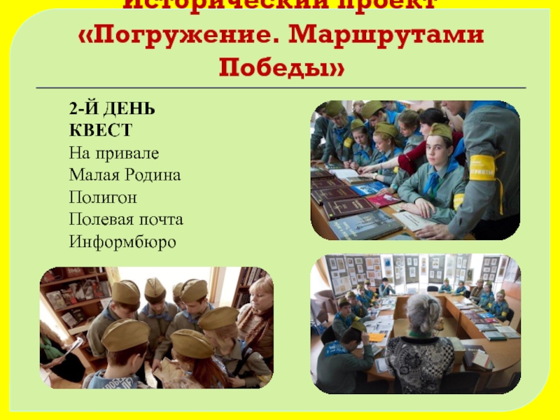 Слайд 15Исторический проект «Погружение. Маршрутами Победы»