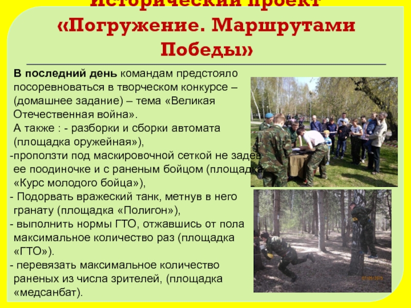 Слайд 19Исторический проект «Погружение. Маршрутами Победы»