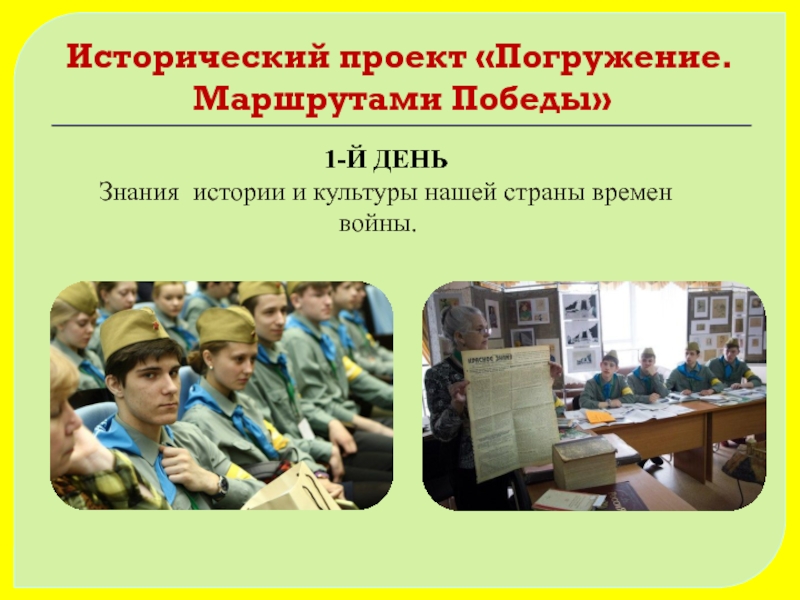 Слайд 7Исторический проект «Погружение. Маршрутами Победы»