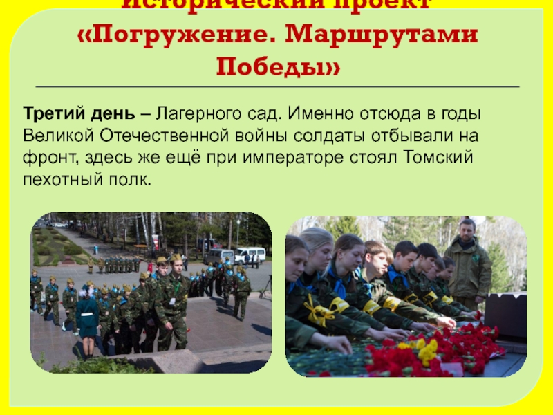 Слайд 20Исторический проект «Погружение. Маршрутами Победы»