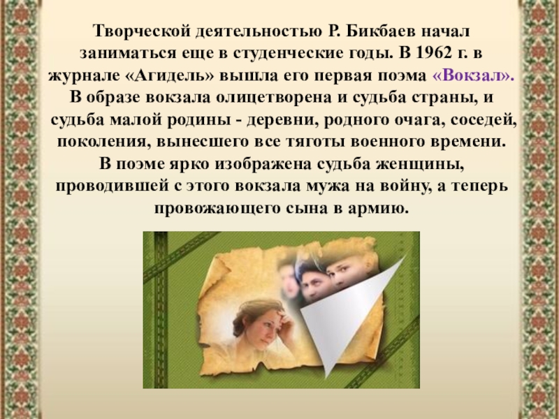 Слайд 8Творческой деятельностью Р. Бикбаев начал заниматься еще в студенческие годы.