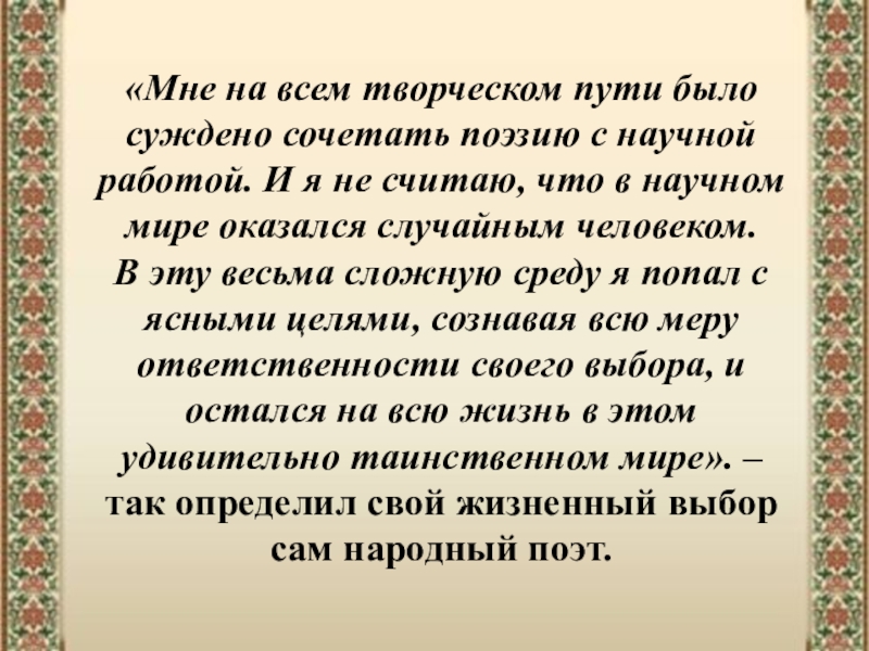 Слайд 6«Мне на всем творческом пути было суждено сочетать поэзию с