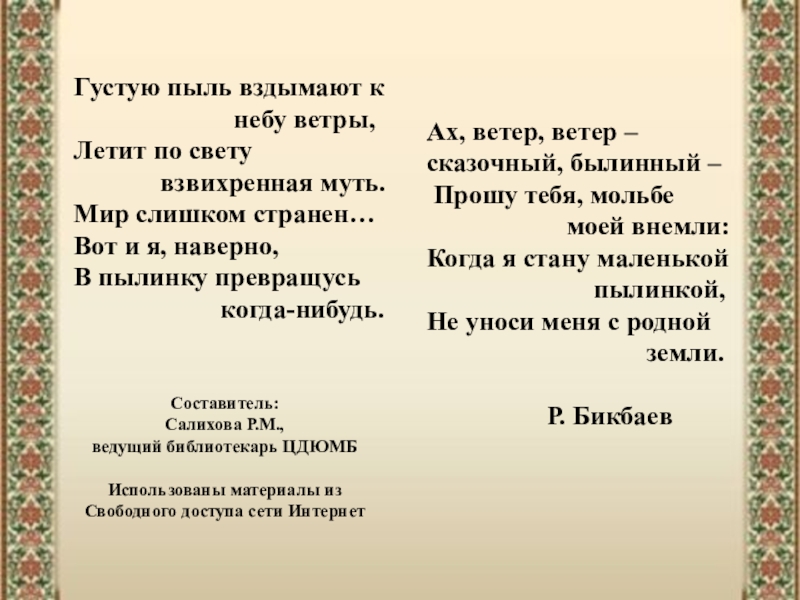 творчеству народного поэта Башкортостана Р. Т. Бикбаева