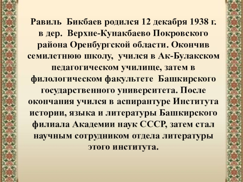 Слайд 7Равиль Бикбаев родился 12 декабря 1938 г.
