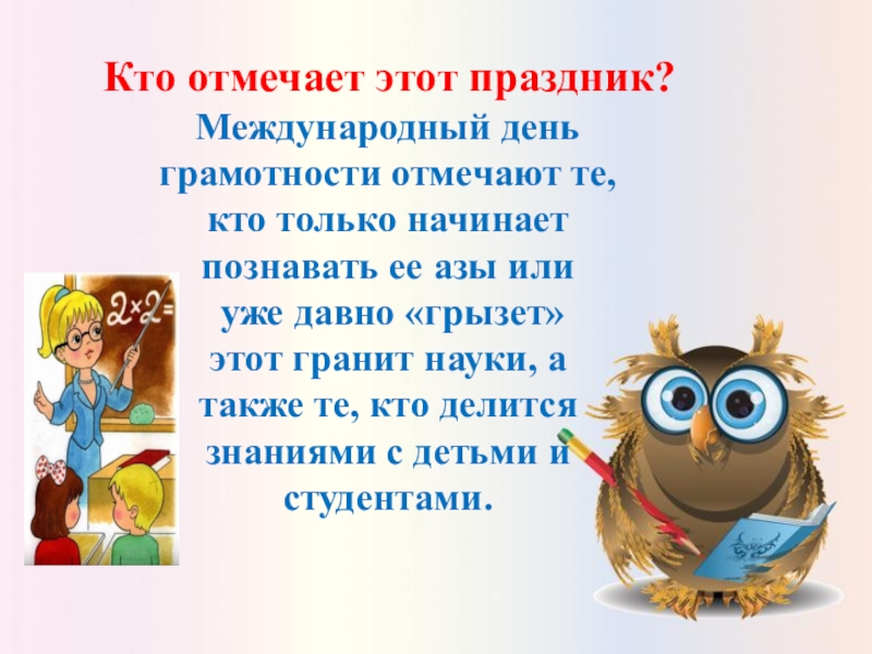 возможность привлечь внимание к тому, что более 15% людей земного шара остаются безграмотными.