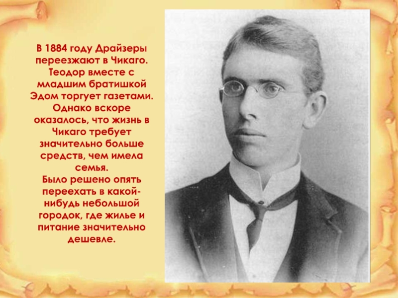 Слайд 6В 1884 году Драйзеры переезжают в Чикаго.