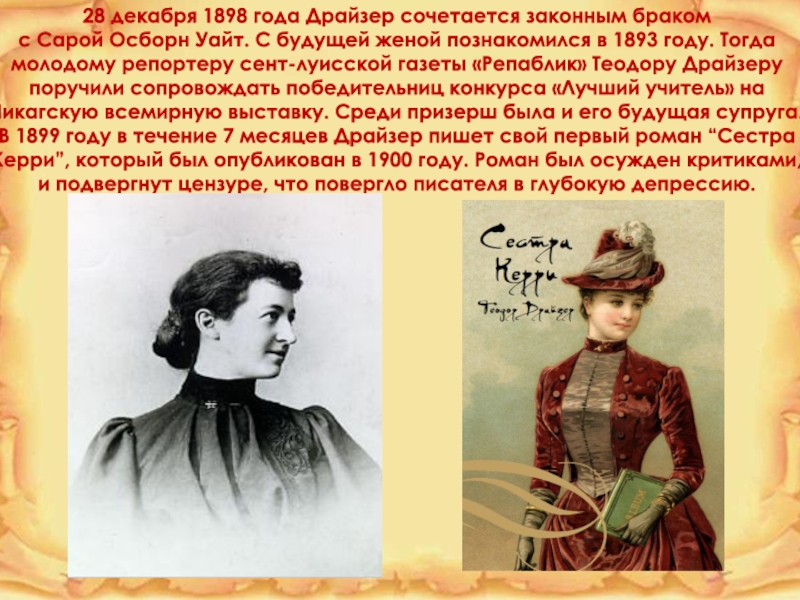 Слайд 1128 декабря 1898 года Драйзер сочетается законным браком