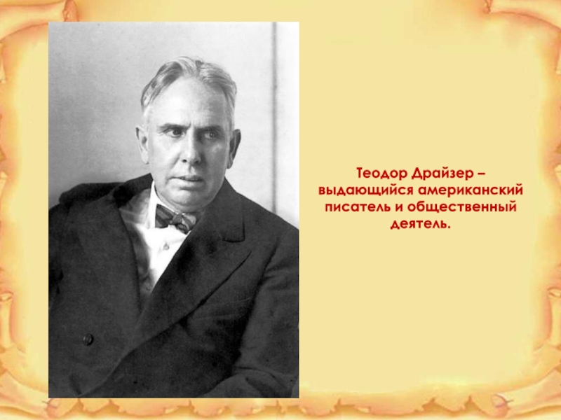 Слайд 2Теодор Драйзер – выдающийся американский писатель и общественный деятель.