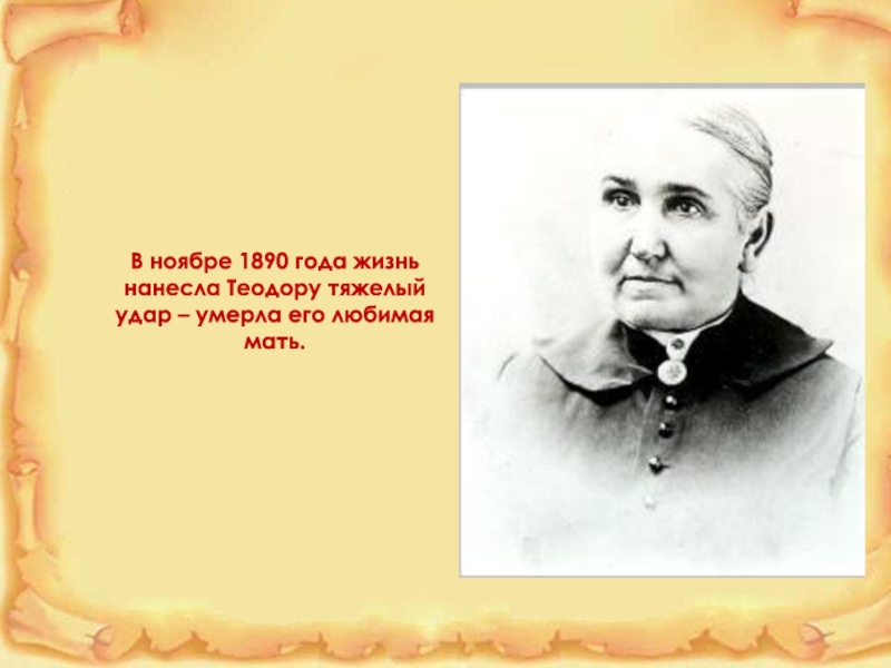 Слайд 8В ноябре 1890 года жизнь нанесла Теодору тяжелый удар –