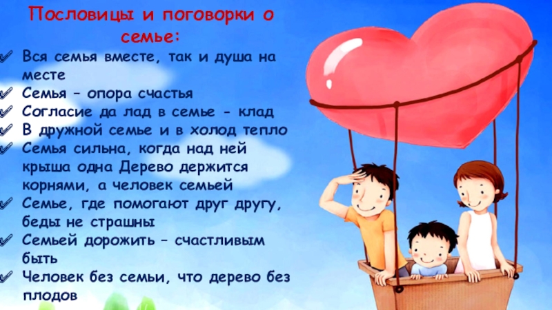 Семья сильна, когда над ней крыша одна Дерево держится корнями, а человек семьей