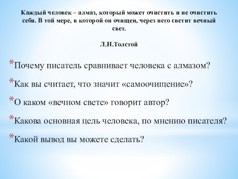 Почему писатель сравнивает человека с алмазом?