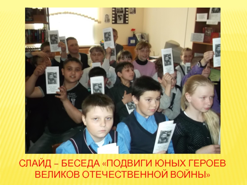 Слайд 41СЛАЙД – БЕСЕДА «ПОДВИГИ ЮНЫХ ГЕРОЕВ ВЕЛИКОВ ОТЕЧЕСТВЕННОЙ ВОЙНЫ»