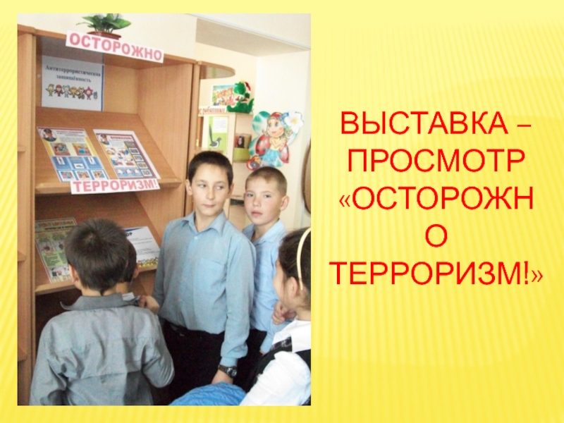 Слайд 46ВЫСТАВКА – ПРОСМОТР «ОСТОРОЖНО ТЕРРОРИЗМ!»