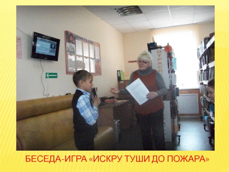 Слайд 5БЕСЕДА-ИГРА «ИСКРУ ТУШИ ДО ПОЖАРА»
