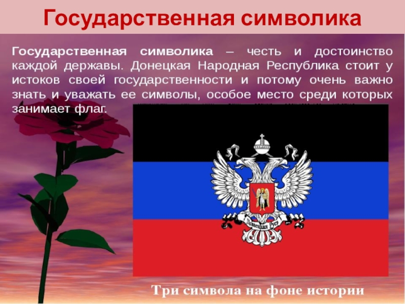 Слайд 5 Первый флаг Донецкой Народной Республики был создан весной 2014