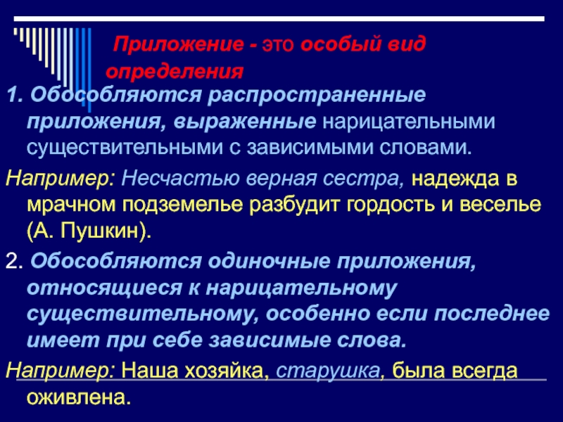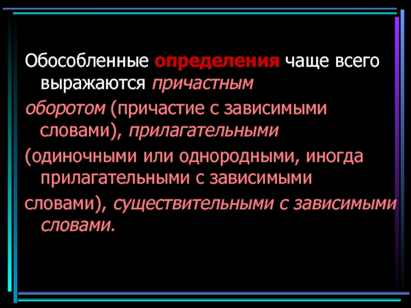 (одиночными или однородными, иногда прилагательными с зависимыми