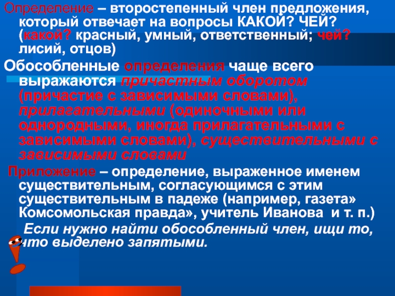 Слайд 8Определение – второстепенный член предложения, который отвечает на вопросы КАКОЙ?