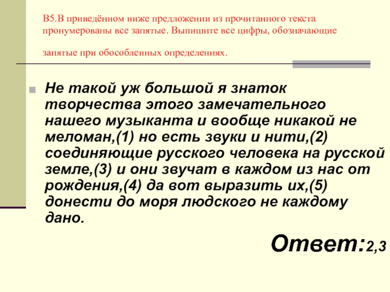 Слайд 20В5.В приведённом ниже предложении из прочитанного текста пронумерованы все запятые.
