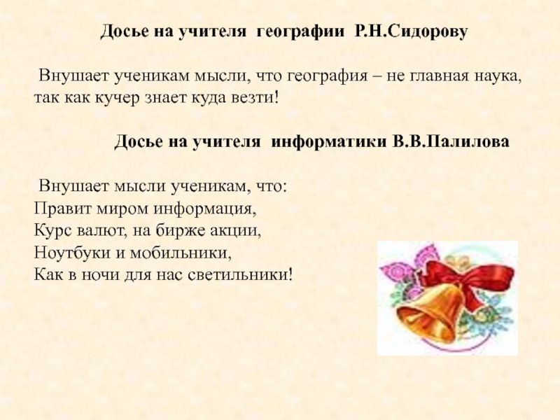 Слайд 45Досье на учителя географии Р.Н.Сидорову