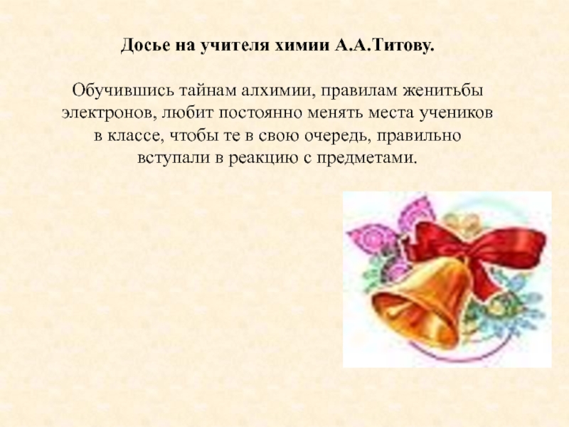 Слайд 41Досье на учителя химии А.А.Титову.