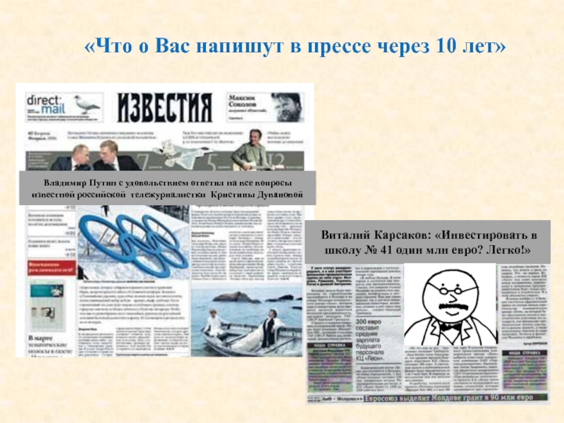 Слайд 37«Что о Вас напишут в прессе через 10 лет»