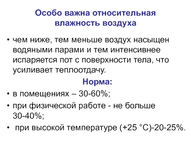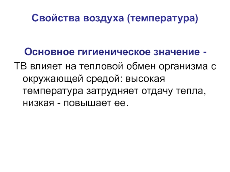 организма с окружающей средой: высокая температура затрудняет отдачу тепла, низкая