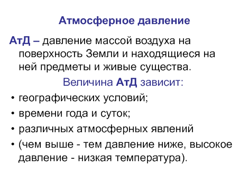 (чем выше - тем давление ниже, высокое давление - низкая температура).