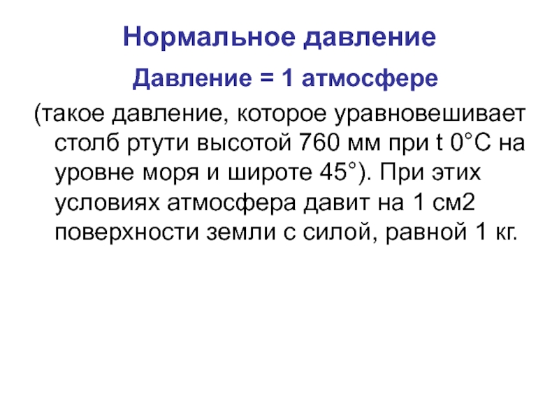 и широте 45°). При этих условиях атмосфера давит на 1 см2 поверхности земли с силой, равной 1 кг.