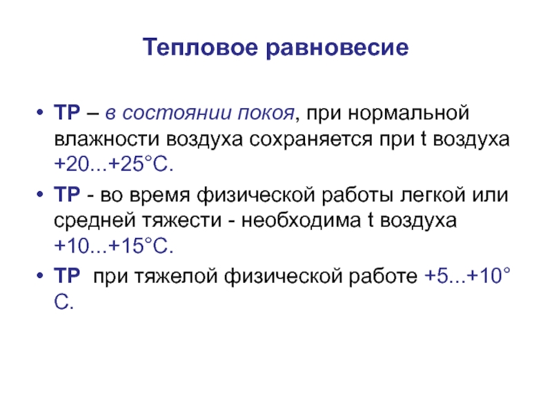 ТР – в состоянии покоя, при нормальной влажности воздуха