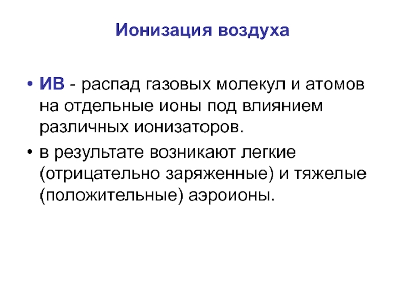(отрицательно заряженные) и тяжелые (положительные) аэроионы.