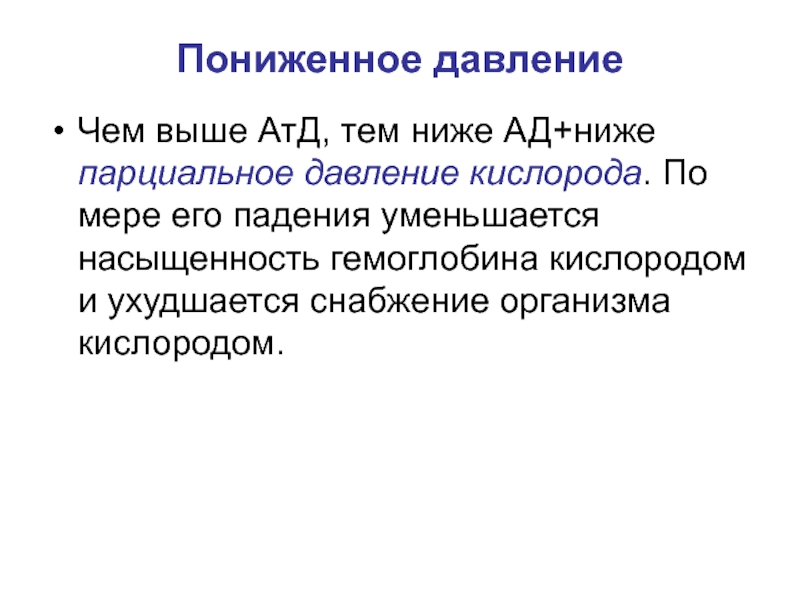 Чем выше АтД, тем ниже АД+ниже парциальное давление кислорода.