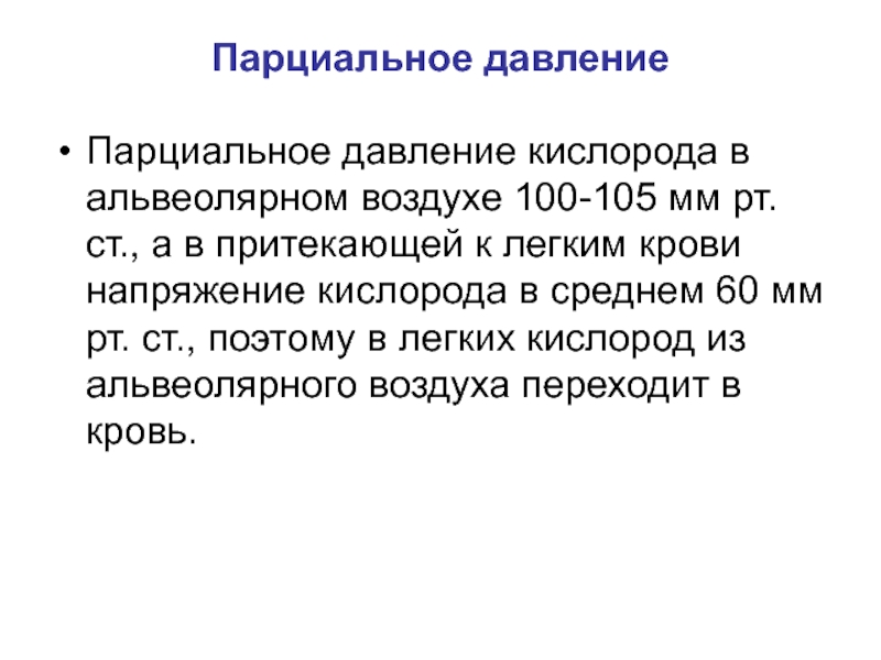 среднем 60 мм рт. ст., поэтому в легких кислород из альвеолярного воздуха переходит в кровь.