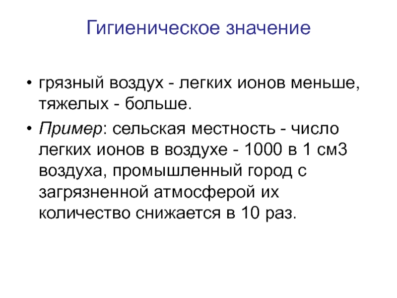 грязный воздух - легких ионов меньше, тяжелых - больше.