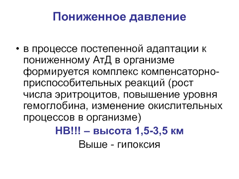 формируется комплекс компенсаторно-приспособительных реакций (рост числа эритроцитов, повышение уровня гемоглобина,