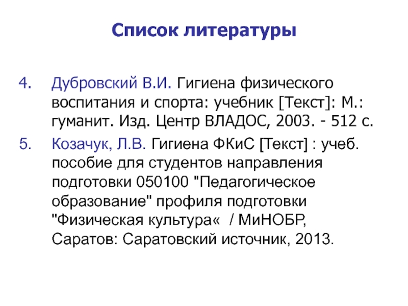 Дубровский В.И. Гигиена физического воспитания и спорта: учебник [Текст]: