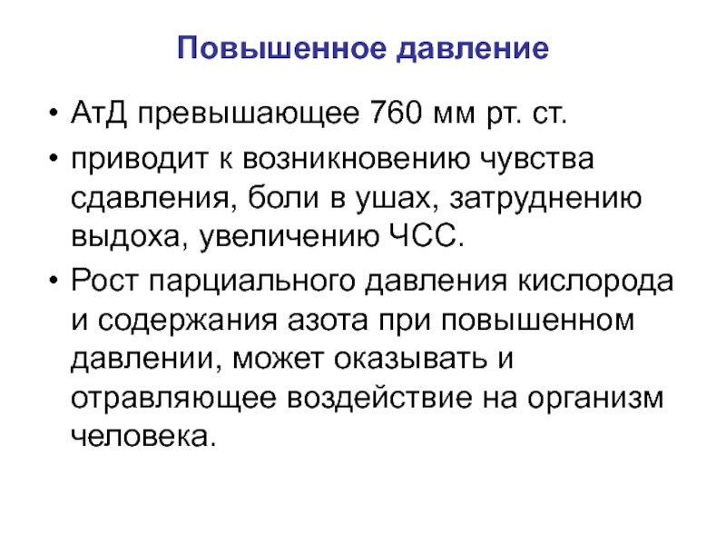 давления кислорода и содержания азота при повышенном давлении, может оказывать и отравляющее воздействие на организм человека.