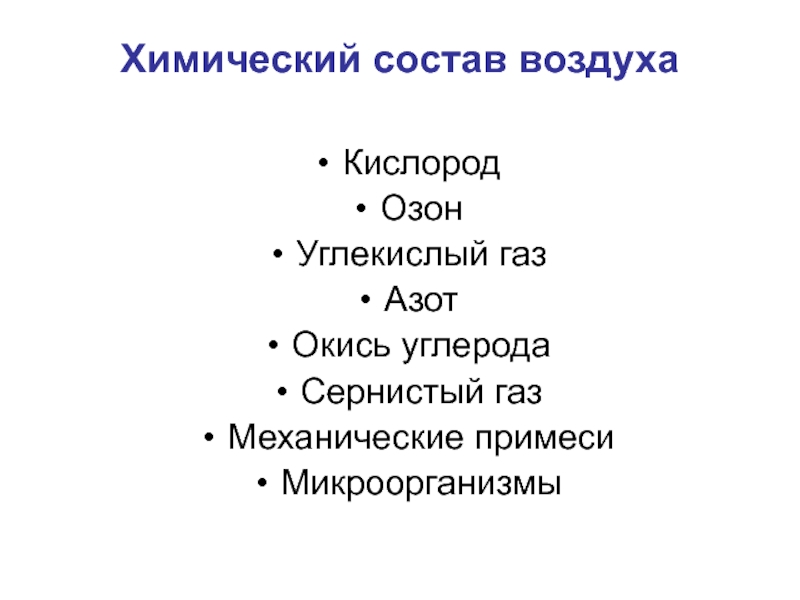 кислород - 20,93%, углекислота -0,03-0,04, азот - 78,1, аргон, гелий,